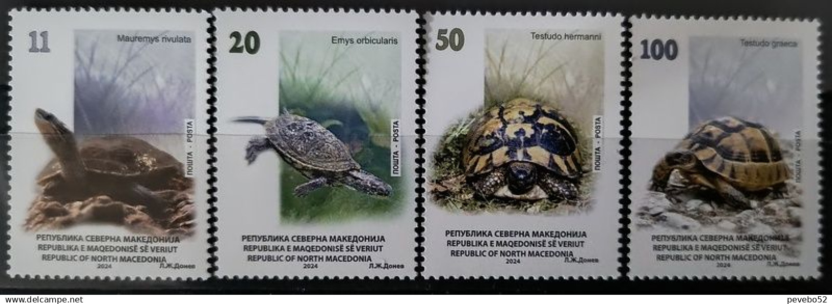 North Macedonia CLICK TO ENLARGE SC 589 03 Apr 12 100d single value unidentified tortoise SC 1001 – 1004 14 Nov 24 Various Mauremys rivulata, Emys orbicularis, Testudo hermanni, Testudo graeca