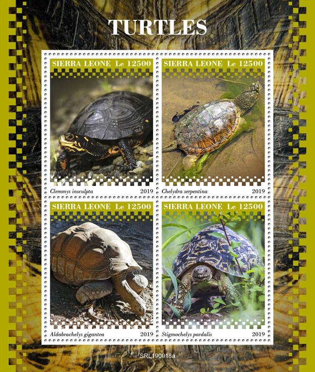 SC 5544 | 12500 le 26 Sep 19 Clemmys insculpta, Chelydra serpentina, Aldabrachelys gigantea, Stigmochelys pardalis | |